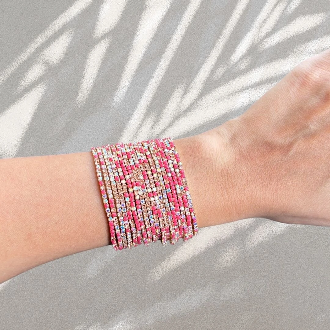 Nossas pulseiras Riviera com elástico são perfeitas para compor combinações estilosas com conforto e praticidade. Vendidas em packs com 6, 12 ou 18 unidades, elas são ideais tanto para uso pessoal quanto para revenda.