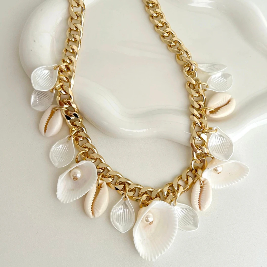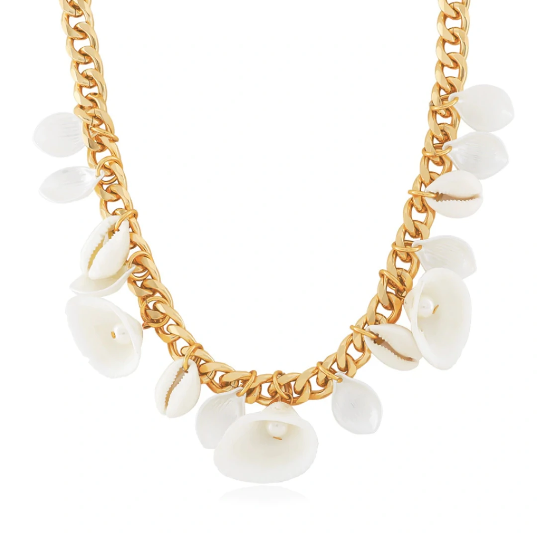 Um mix perfeito entre sofisticação e natureza. As conchas e búzios trazem frescor e leveza, enquanto a corrente grumet garante presença e estilo marcante. Uma peça que combina delicadeza com personalidade, ideal para compor looks de verão ou dar um toque autêntico em qualquer estação.