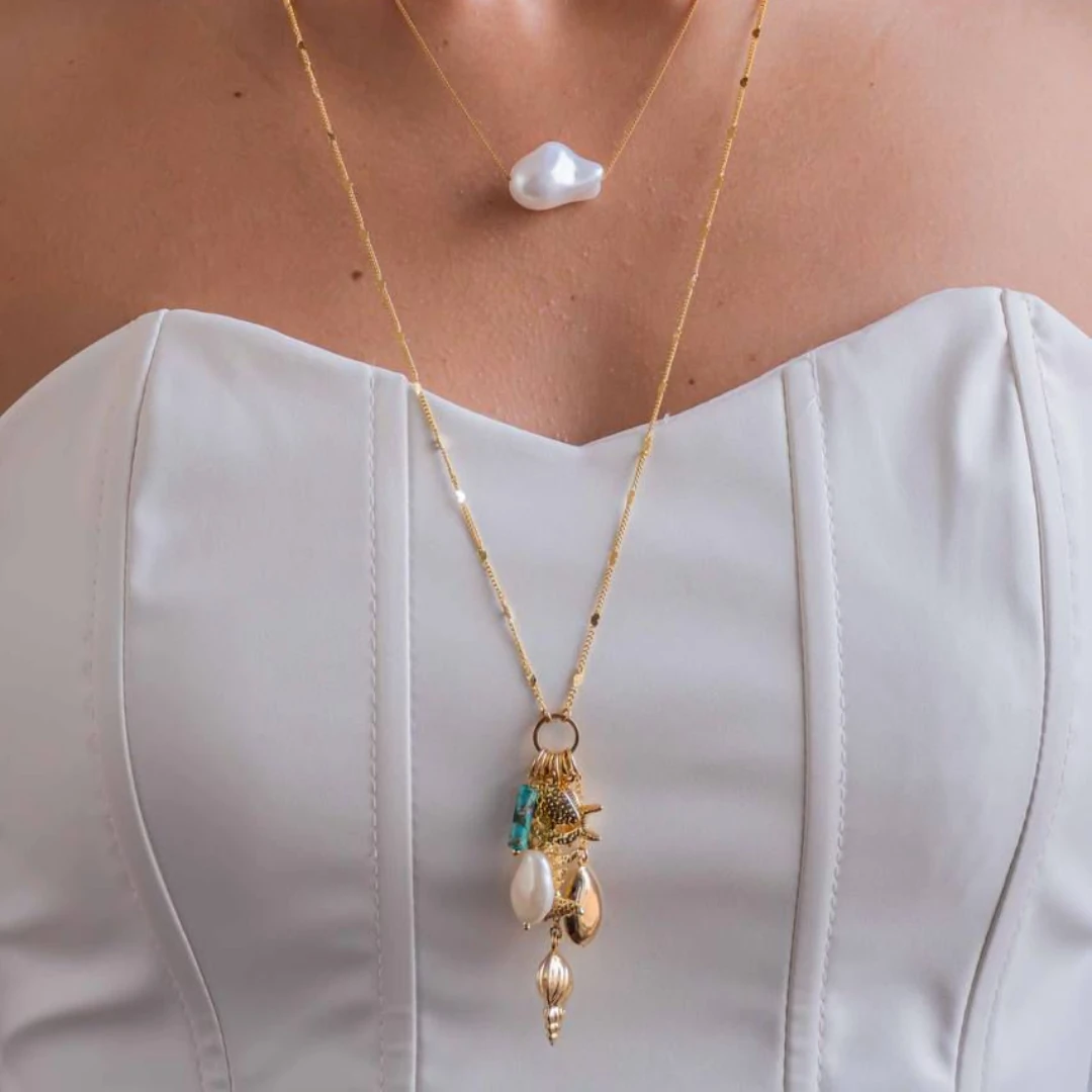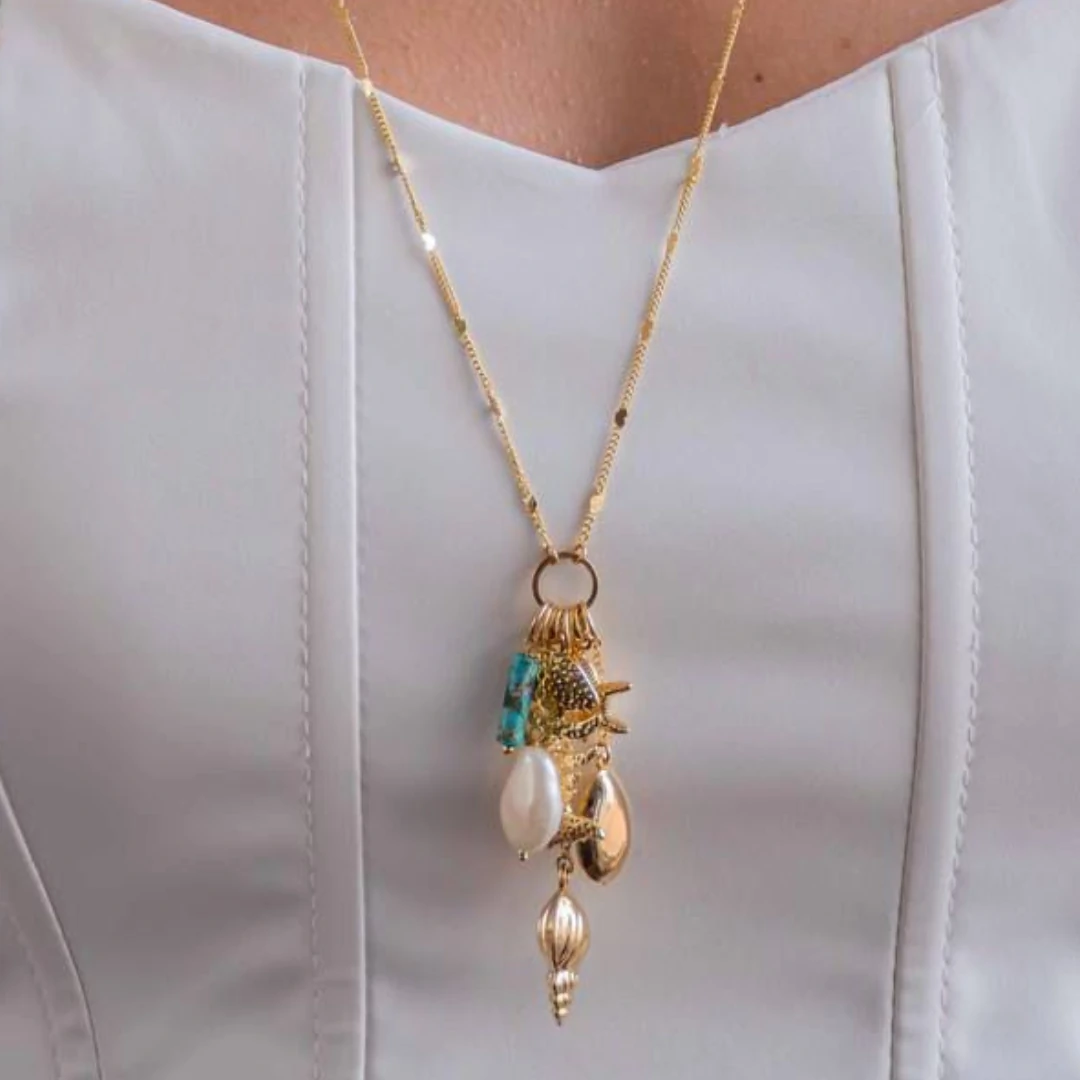 Inspirado na energia leve e solar do verão, o Colar Longo Patuá Mar traz um mix encantador de pingentes do mar — búzios, conchas e detalhes que carregam boas vibrações.