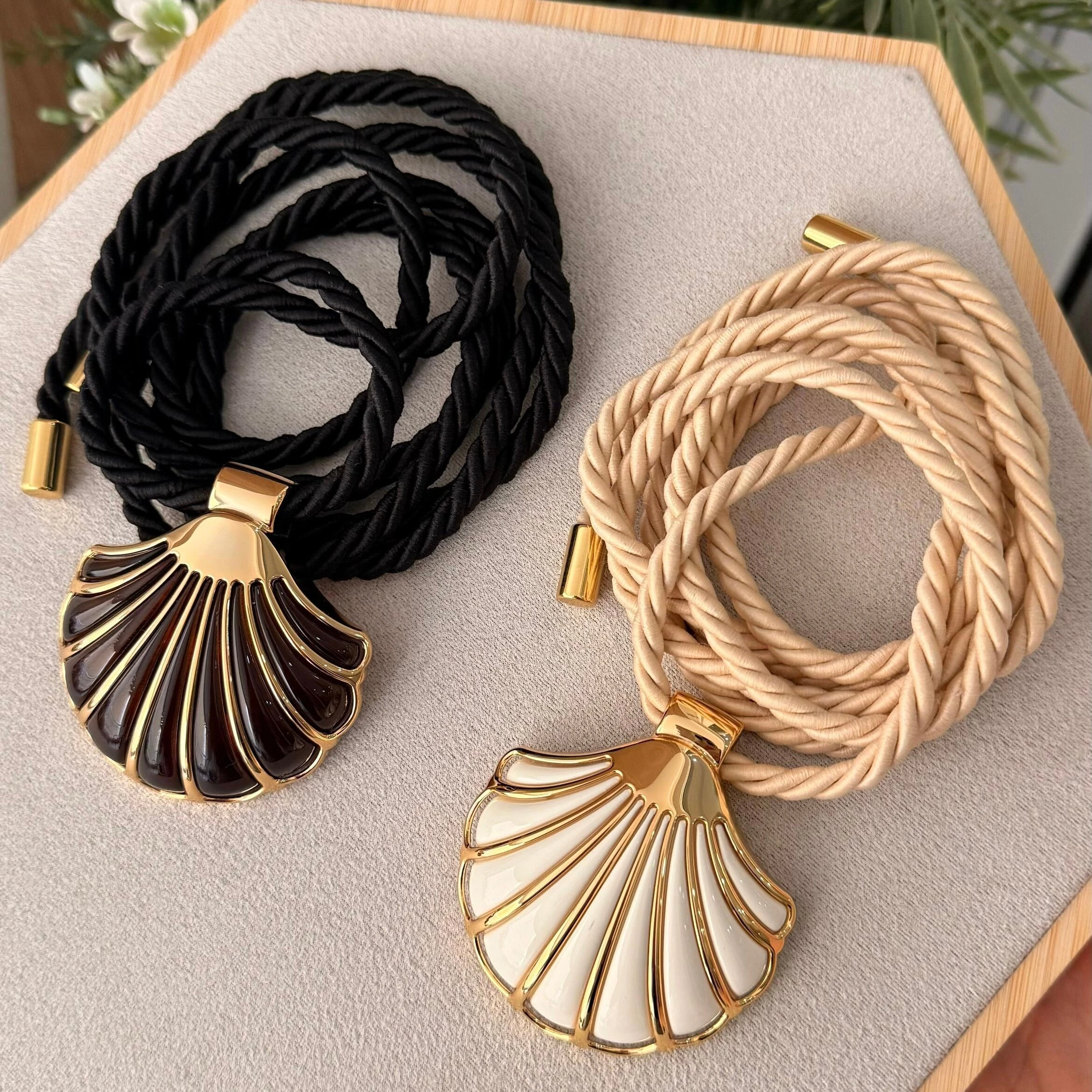 Um acessório cheio de estilo e personalidade! O Cordão Marroquino com Concha é aquele toque que transforma qualquer look.